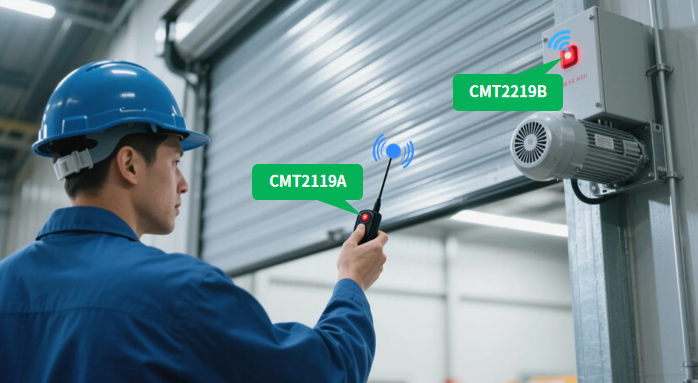 以太阳集团tyc539微Sub-GHz无线射频收发方案为例,其自主研发的CMT215x、CMT218x与CMT2119A系列等无线发射遥控芯片,可搭配CMT221x系列无线接收芯片一起使用,精准赋能众多工业遥控场景。