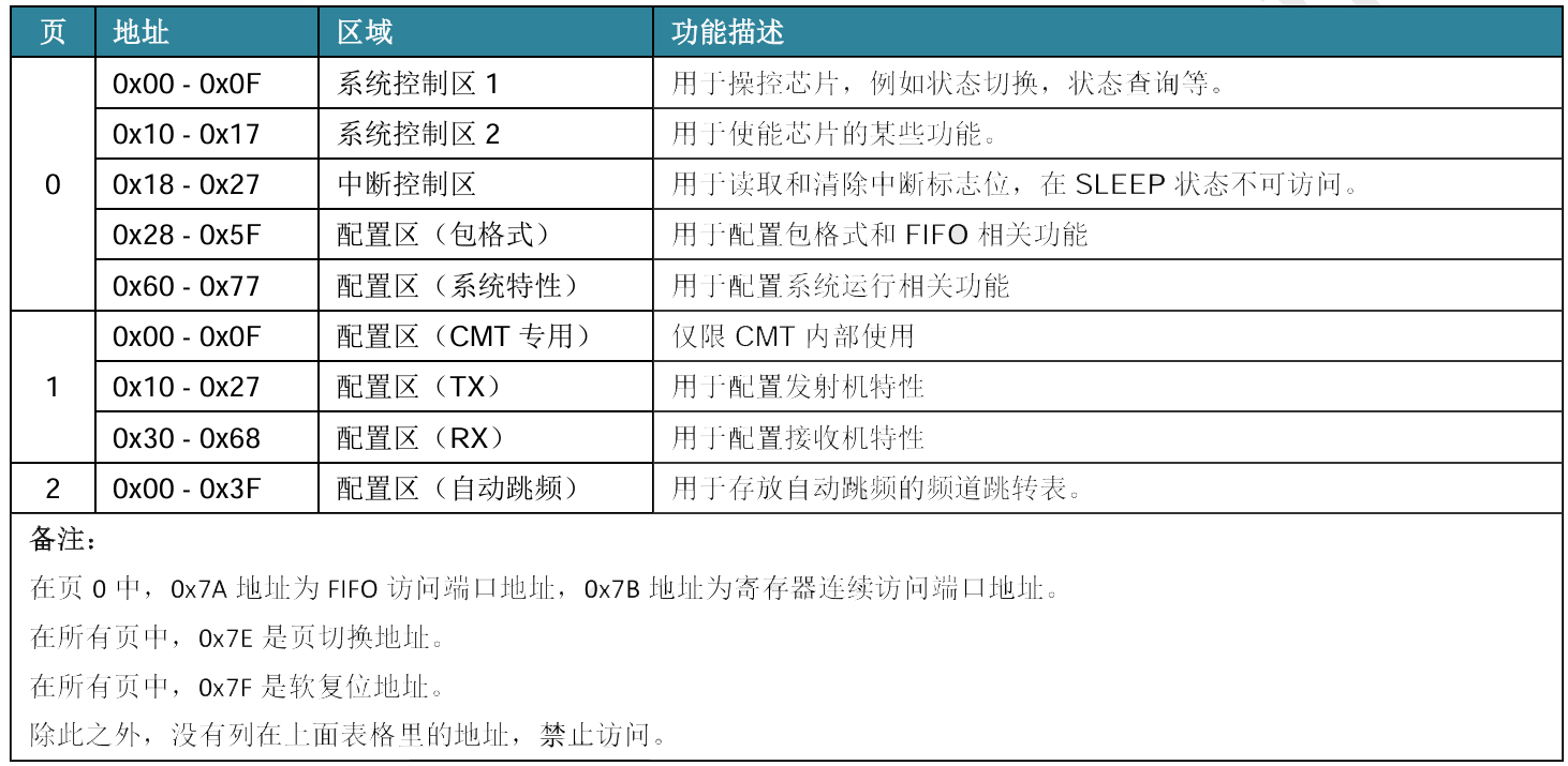 CMT2310A提供SPI通讯接口,外部MCU可通过访问相关寄存器的方式来对芯片的各种功能进行配置,控制主芯片,并访问FIFO。