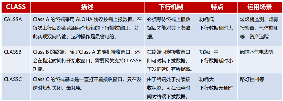 其中,Class A模式为双向异步通信,上行传输后开启2个短暂下行窗口接收响应,功耗最低。